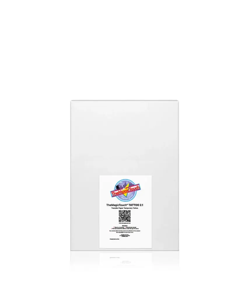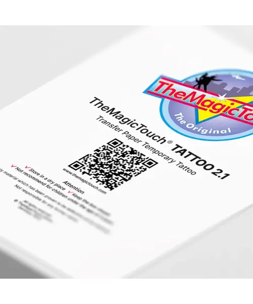TheMagicTouch Tattoo 2.1 is a temporary tattoo used for skin and nails. It is a perfect alternative to a real tattoo, indistinguishable from real and compatible with toner based color copiers and printers.